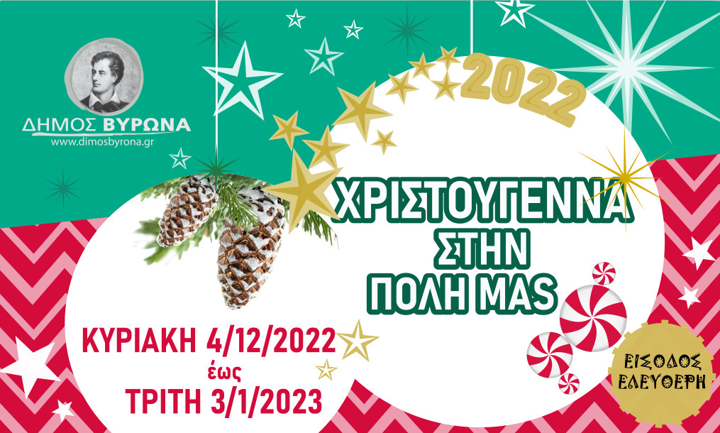 Ο Δήμος Βύρωνα σας προσκαλεί να γιορτάσουμε όλοι μαζί τον ερχομό των Χριστουγέννων την Κυριακή 4 Δεκεμβρίου 2022, στην Πλατεία Αγίου Λαζάρου στις 17.00.